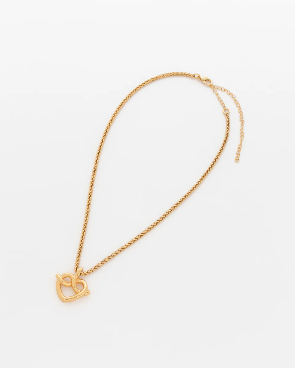 Elegante conjunto de collar y pendientes dorados con un diseño de corazón entrelazado, perfecto para añadir un toque de sofisticación a cualquier atuendo. Ideal para uso diario o eventos especiales.