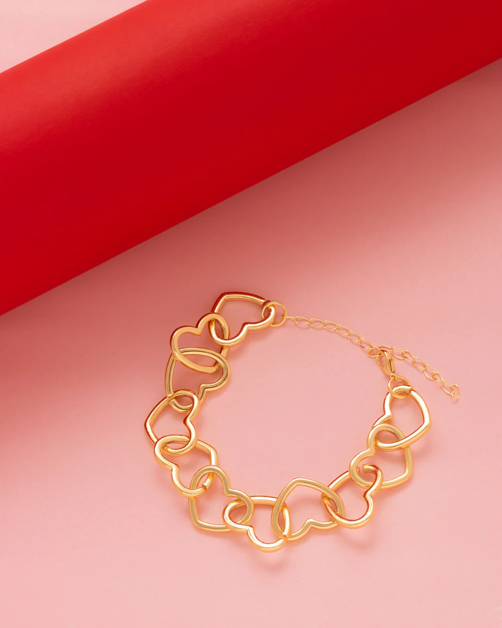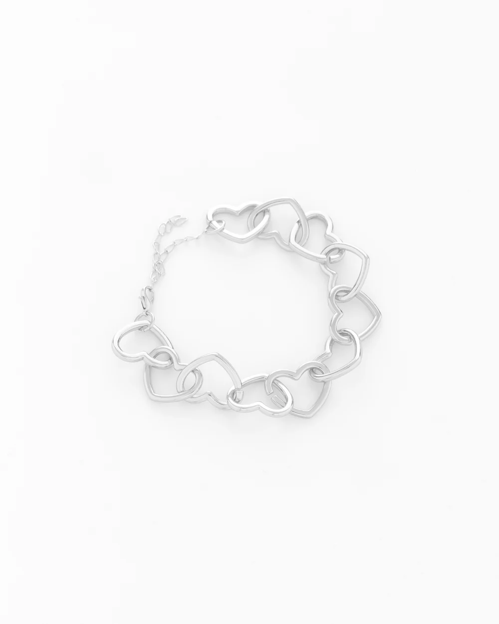 Descubre nuestra pulsera elegante de eslabones en forma de corazón en tono plateado. Un accesorio romántico y chic, perfecto para el día a día o para complementar tu estilo en ocasiones especiales. Ajustable y versátil.