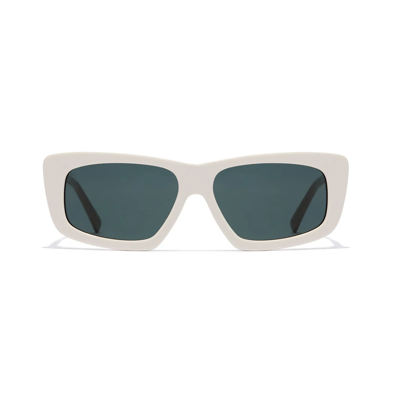 Gafas de sol Hawkers de diseño rectangular y audaz en un elegante color beige claro. Cuentan con lentes oscuras para una protección solar óptima y un estilo moderno y versátil.