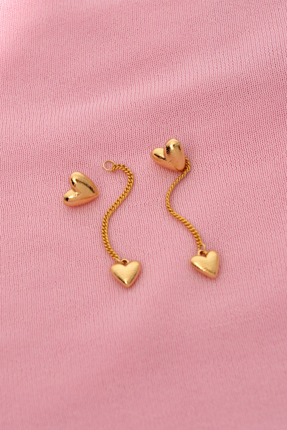 Elegantes aretes dorados con diseño de corazón. Incluye un stud y un par colgante con cadena, perfectos para un look romántico y chic.