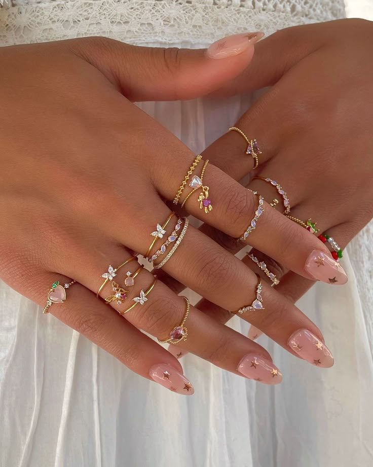 Elegante set de dos anillos dorados: uno con delicadas perlas y otro con un diseño trenzado. Perfectos para lucir juntos o por separado, añadiendo un toque de sofisticación a cualquier look.