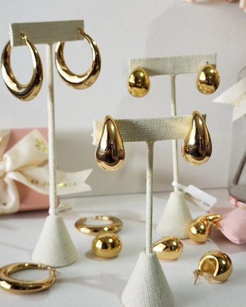 Elegantes aretes dorados con diseño de corazón. Incluye un stud y un par colgante con cadena, perfectos para un look romántico y chic.